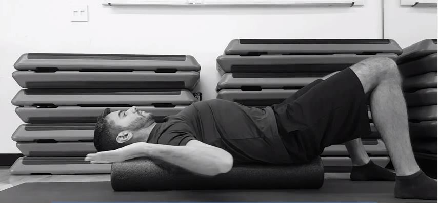 • Lay on back with foam roller places across shoulders.